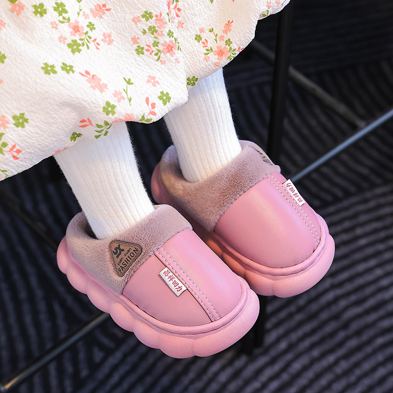 皮面防水防滑男女童亲子室内休闲保暖小孩包跟棉鞋 儿童棉拖鞋 冬季