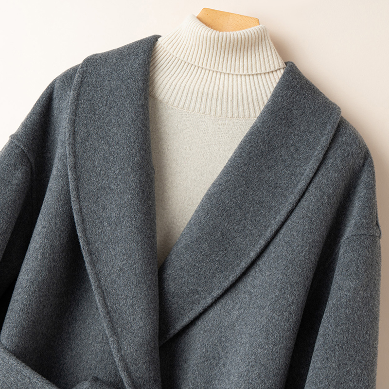 圆领大衣女小个子气质毛呢外套 高端羊毛双面呢短款 2025年春季 新款
