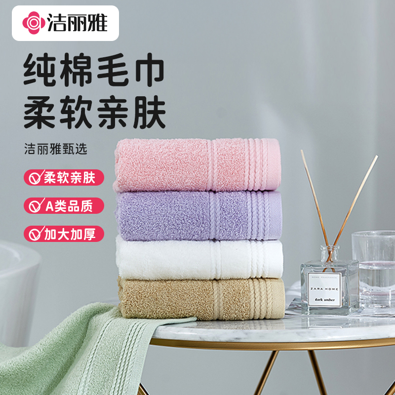 洁玉新款 纯棉柔软吸水不易掉毛家用洗脸三件套 浴巾毛巾方巾套装
