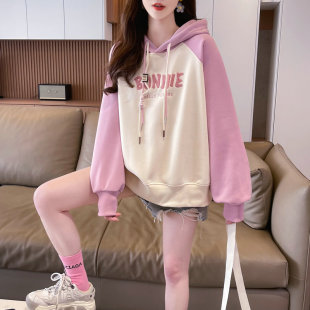 宽松薄款 韩版 百搭撞色小个子初中生外套 春秋季 连帽卫衣女2025新款