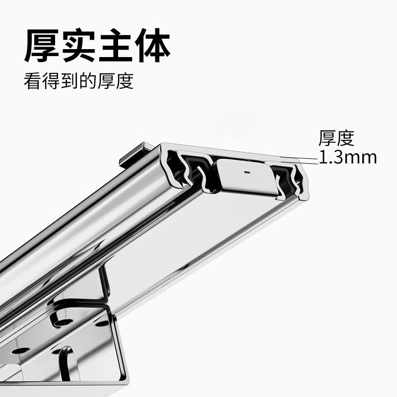 固特不锈钢抽屉轨道三节轨加厚缓冲阻尼静音导轨橱柜键盘托滑轨