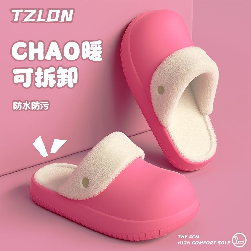 室内家居内胆可拆洗防水拖鞋 可拆卸棉拖鞋 2025新款 秋冬季 冬天 女款