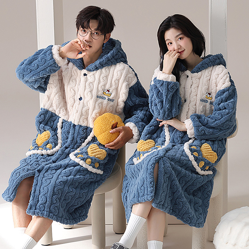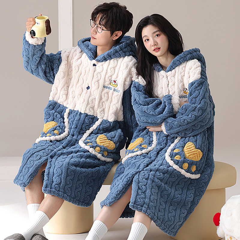 可人儿情侣睡袍冬季 男女士家居服 保暖法兰绒睡衣珊瑚绒浴袍中长款