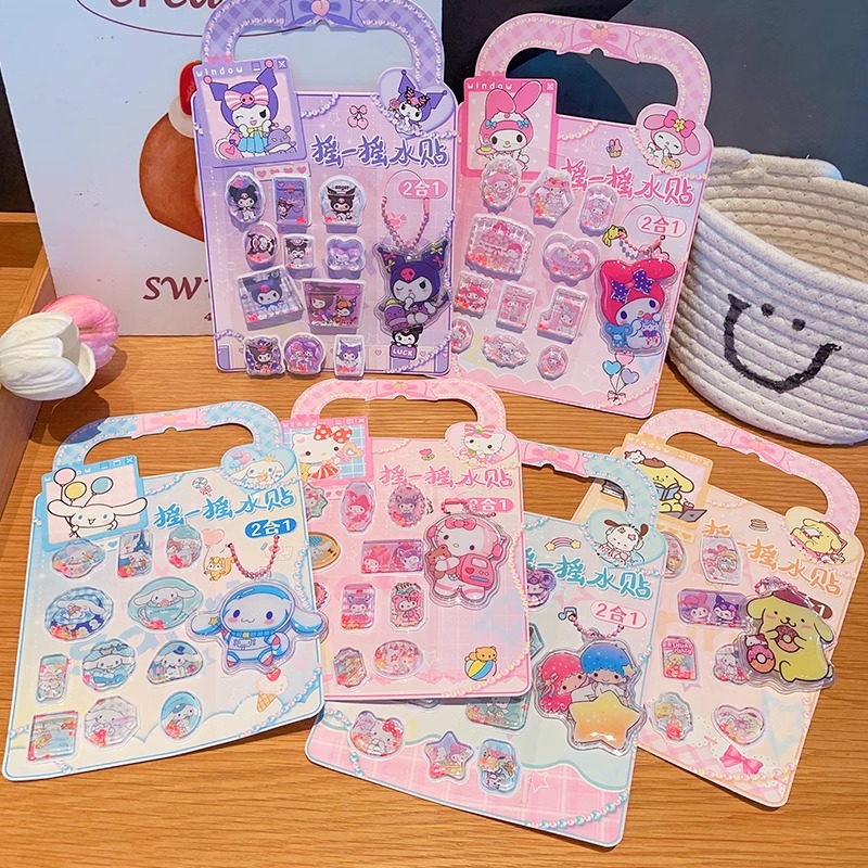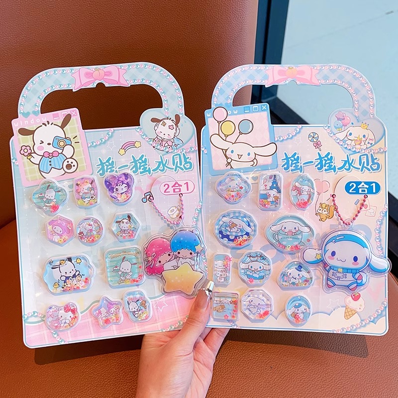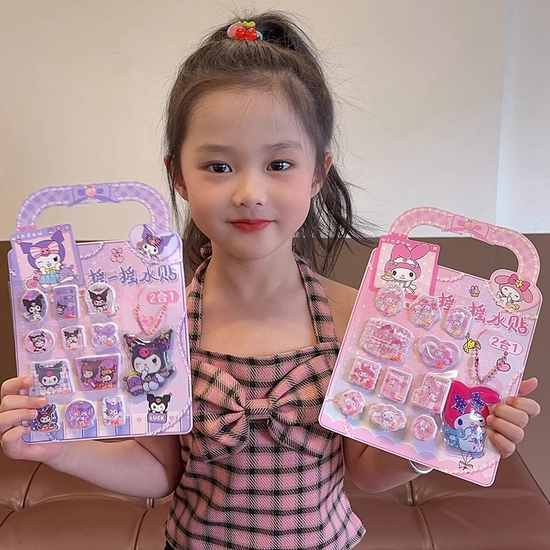 女童可摇动流沙水贴画儿童卡通可爱库洛米美乐蒂立体带水装 饰贴纸