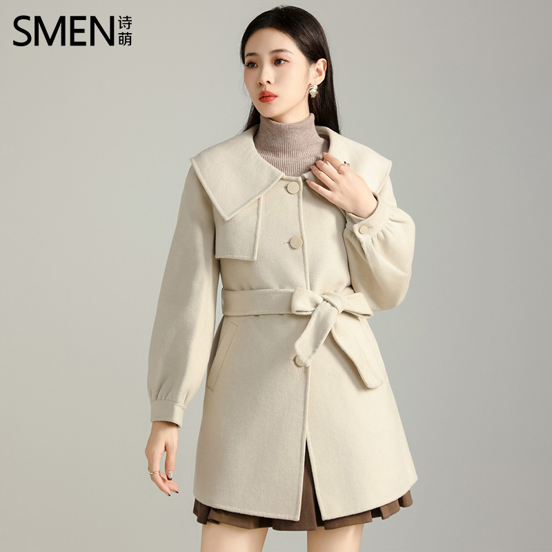 圆领大衣女小个子气质毛呢外套 高端羊毛双面呢短款 2025年春季 新款