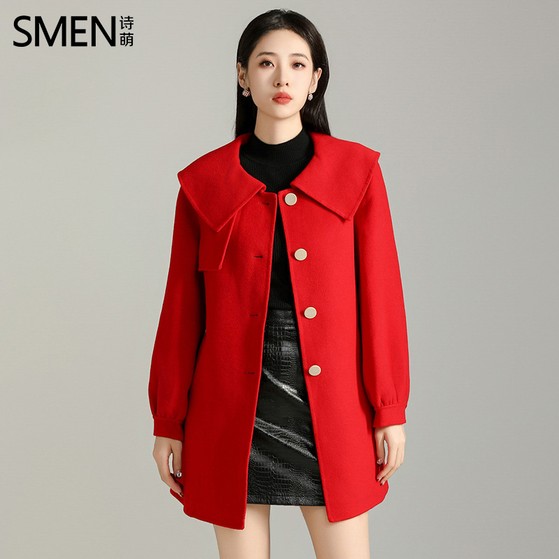 新款 2025冬季 秋水伊人优雅翻领毛呢外套 通勤大衣 100%绵羊毛