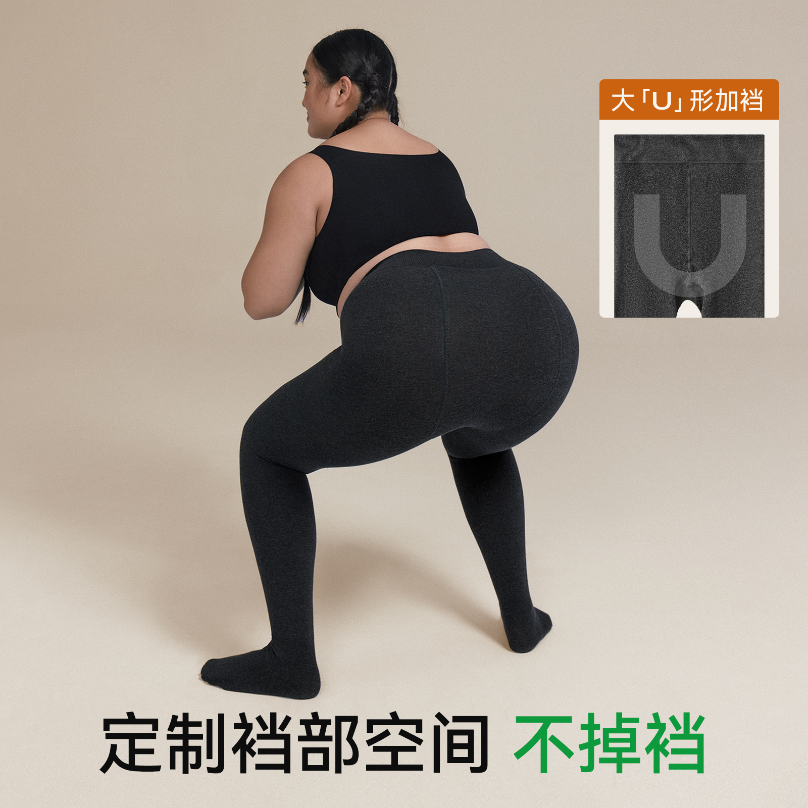 加绒灰色秋冬外穿薄款 袜女大码 连裤 菇娘家澳洲美丽诺绵羊毛打底裤