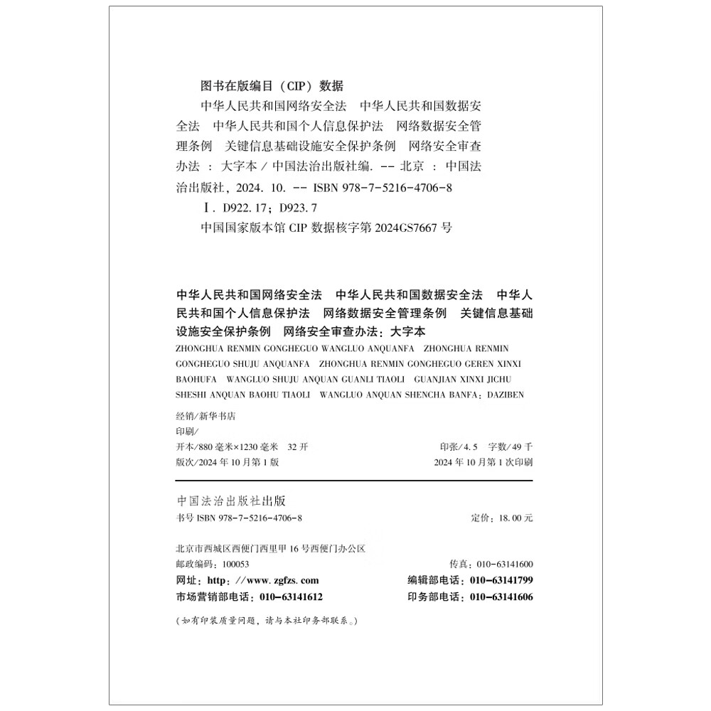 数据安全法 网络安全法 个人信息保护法 网络数据安全管理条例 网络安全审查办法 2024新书 关键信息基础设施安全保护条例 六合一
