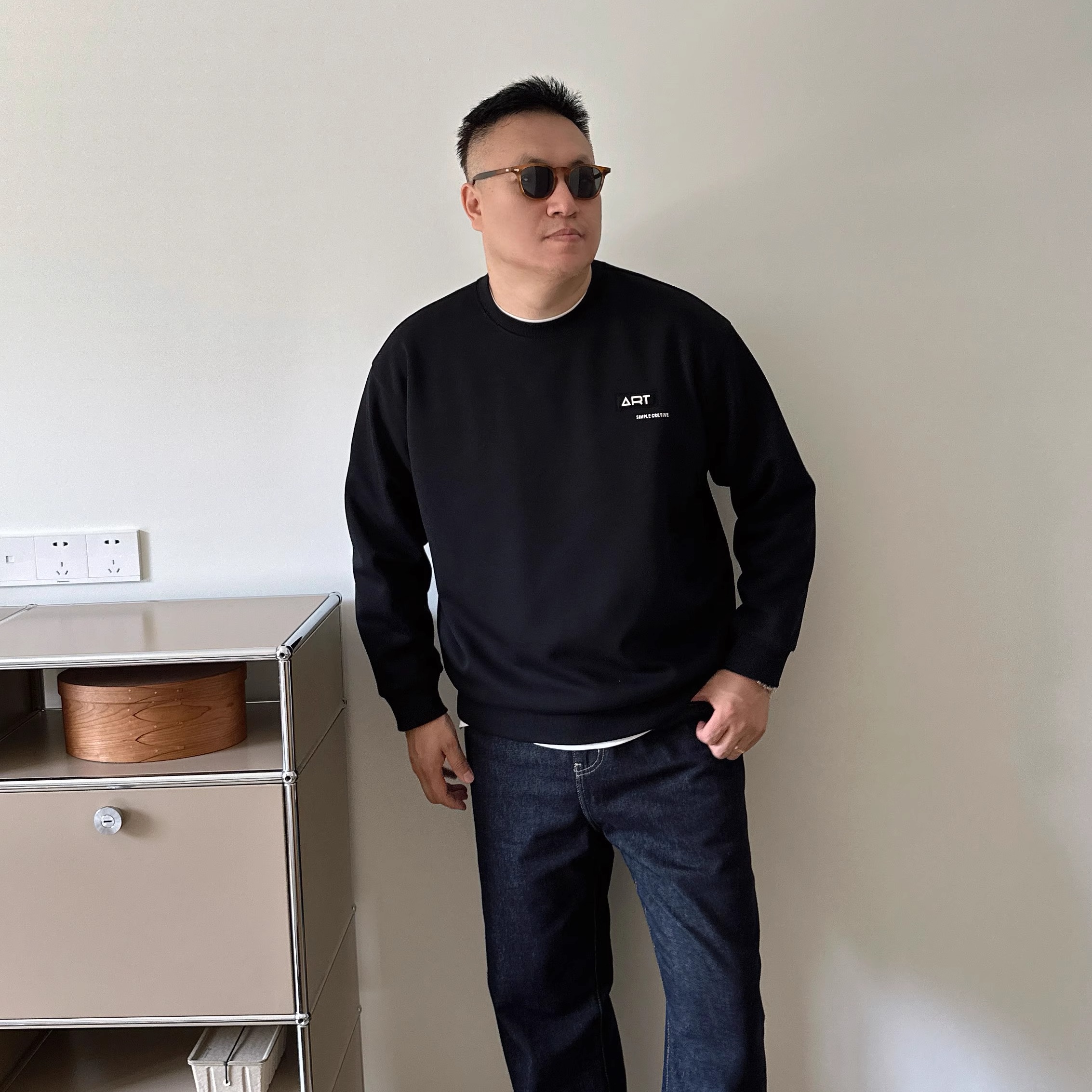 正肩套头衫 班尼路重磅卫衣男款 宽松大码 基础纯色圆领内搭男款 秋季