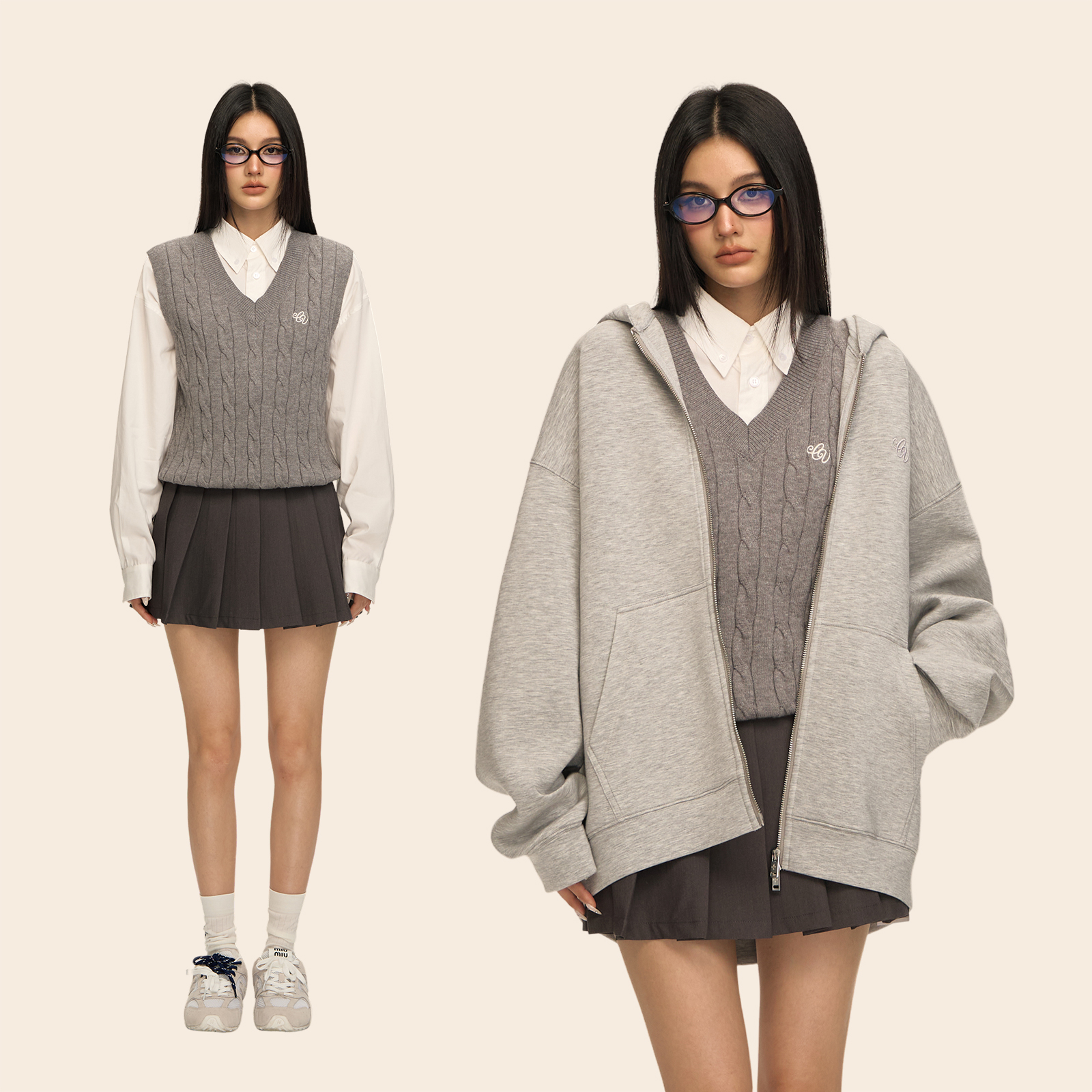 正肩秋装 森柔毛衫 女连帽纯色2025新款 森马针织开衫 显瘦 商场同款
