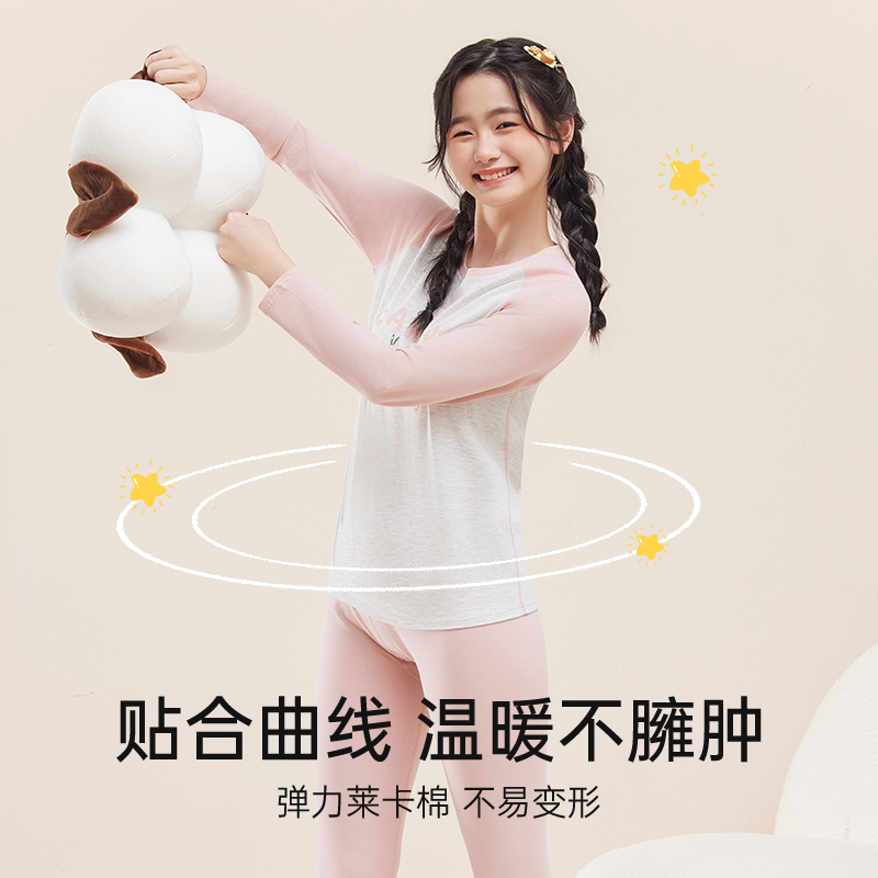 大童保暖线衣睡衣薄 纯棉儿童内衣全棉女孩棉毛衫 女童秋衣秋裤 套装