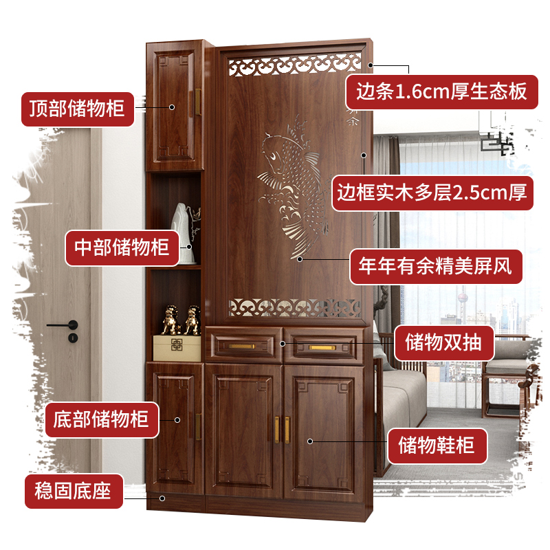 饰 柜玄关柜可移动简约现代木质座屏装 新中式 多功能屏风隔断客厅鞋