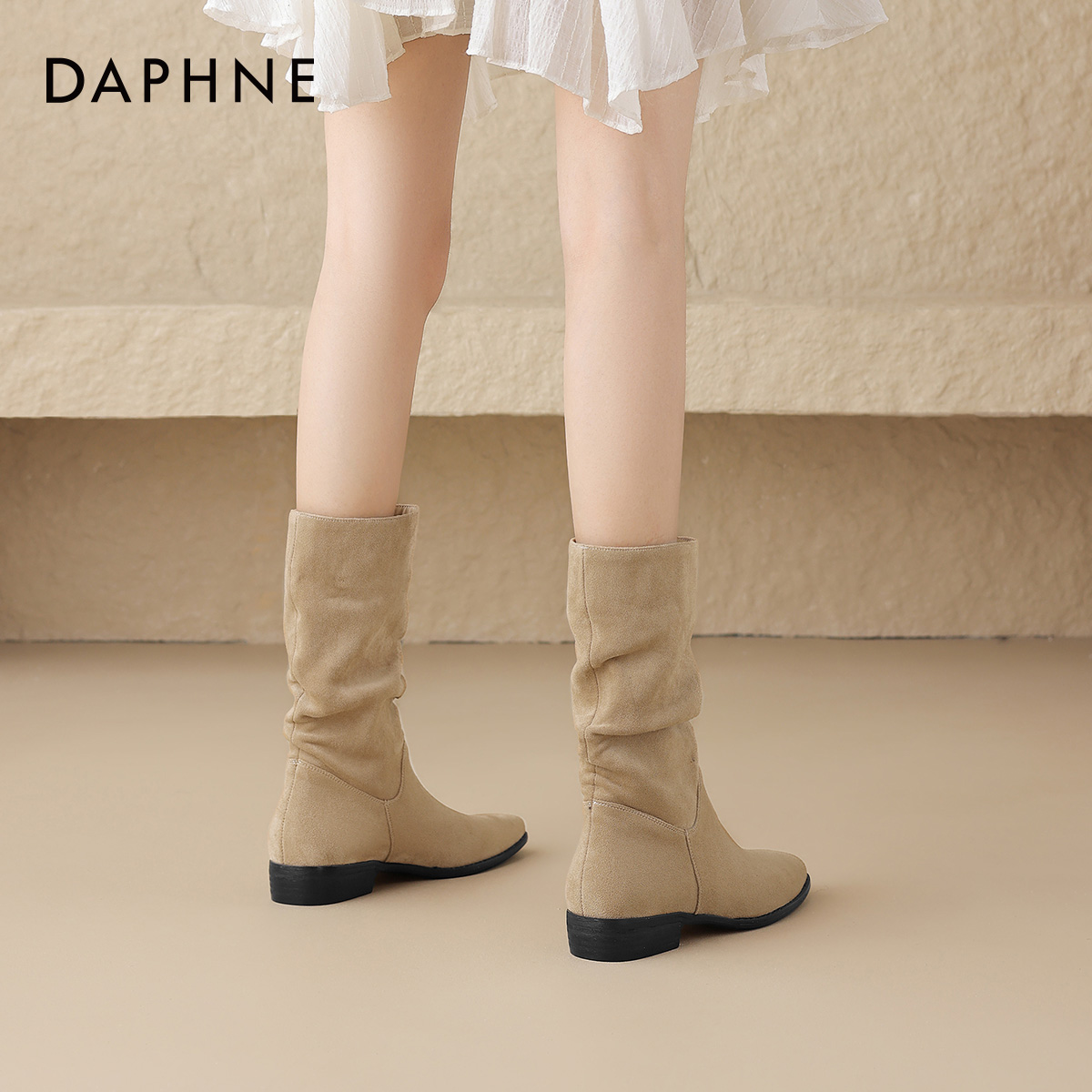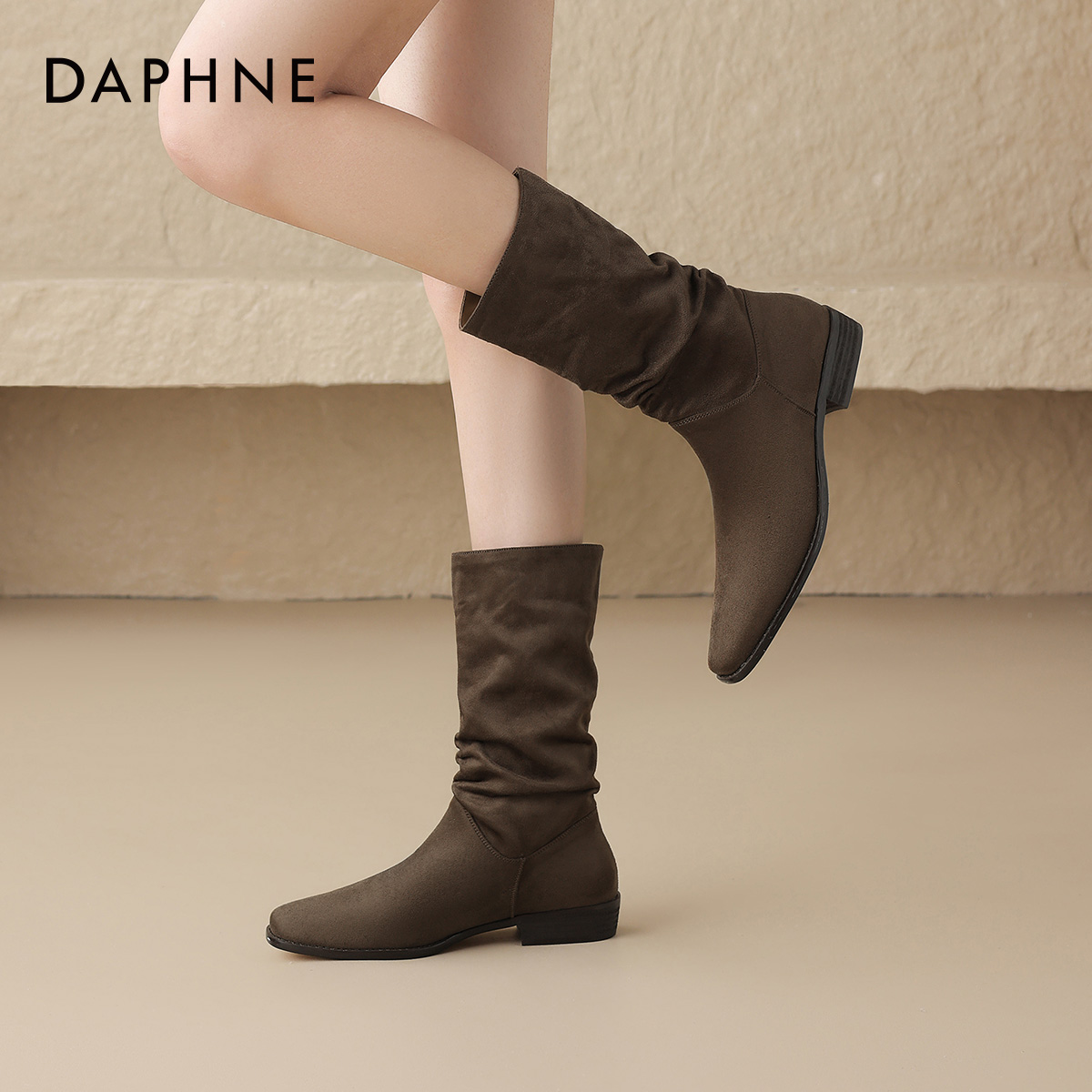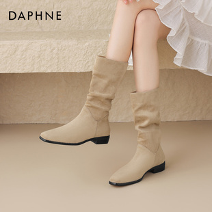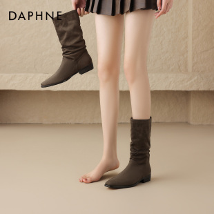 达芙妮堆堆靴子女春秋2025新款 瘦瘦靴中筒靴美拉德西部牛仔短靴女