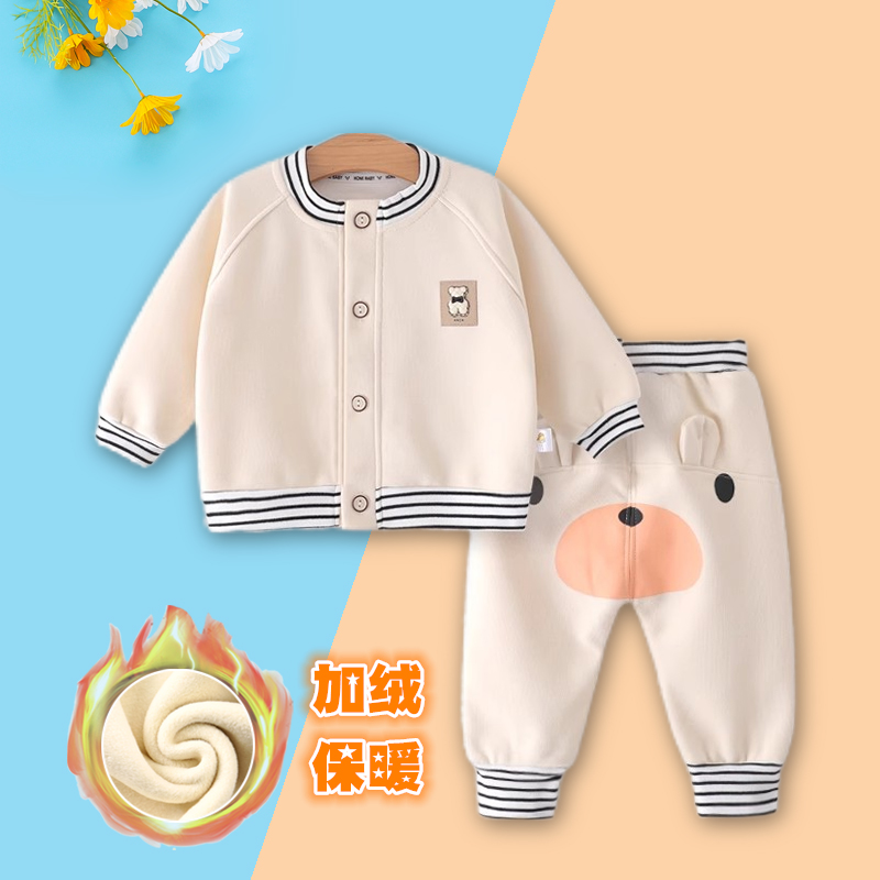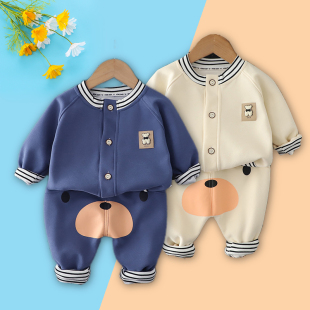 男女两件套婴幼儿童外出春秋冬加绒卡通休闲大屁屁裤 宝宝pp裤 套装