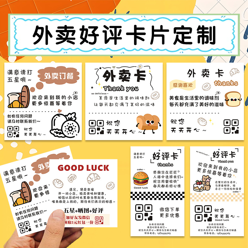 外卖卡片定制美团饿了么贴心评论卡感谢卡小吃店售后卡好平卡五星