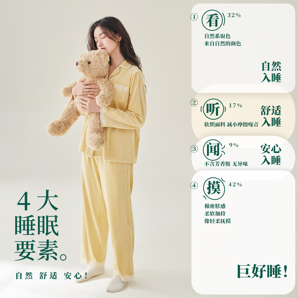 家居服套装 安之伴 简约休闲宽松开衫 秋冬珊瑚绒睡衣女款 巨保暖
