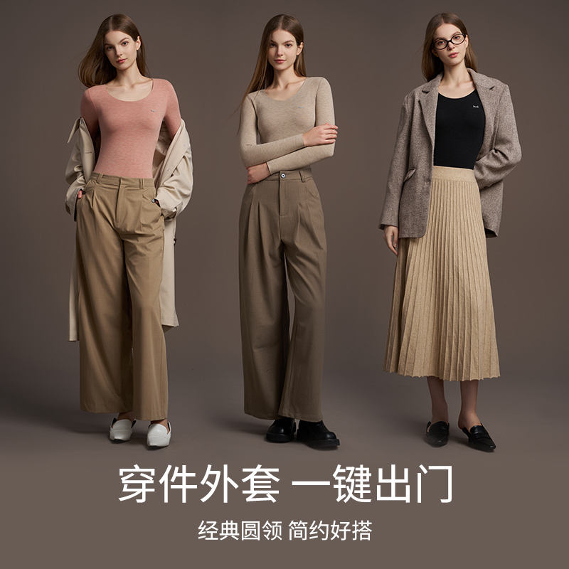 打底加绒上衣冬季 猫人驼绒发热保暖内衣女士德绒无痕秋衣秋裤 套装