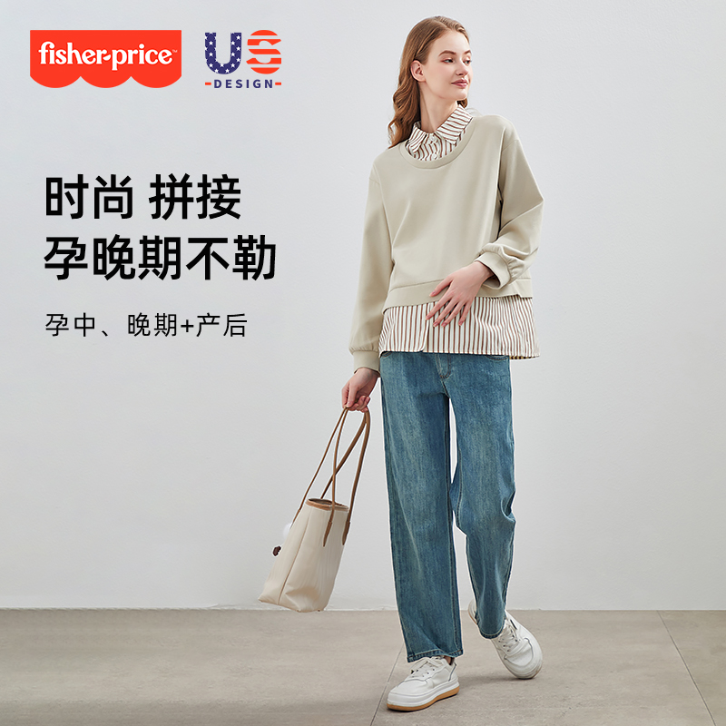 子两件套装 美国费雪孕妇秋装 休闲百搭T恤上衣卫衣春秋牛仔孕妇裤
