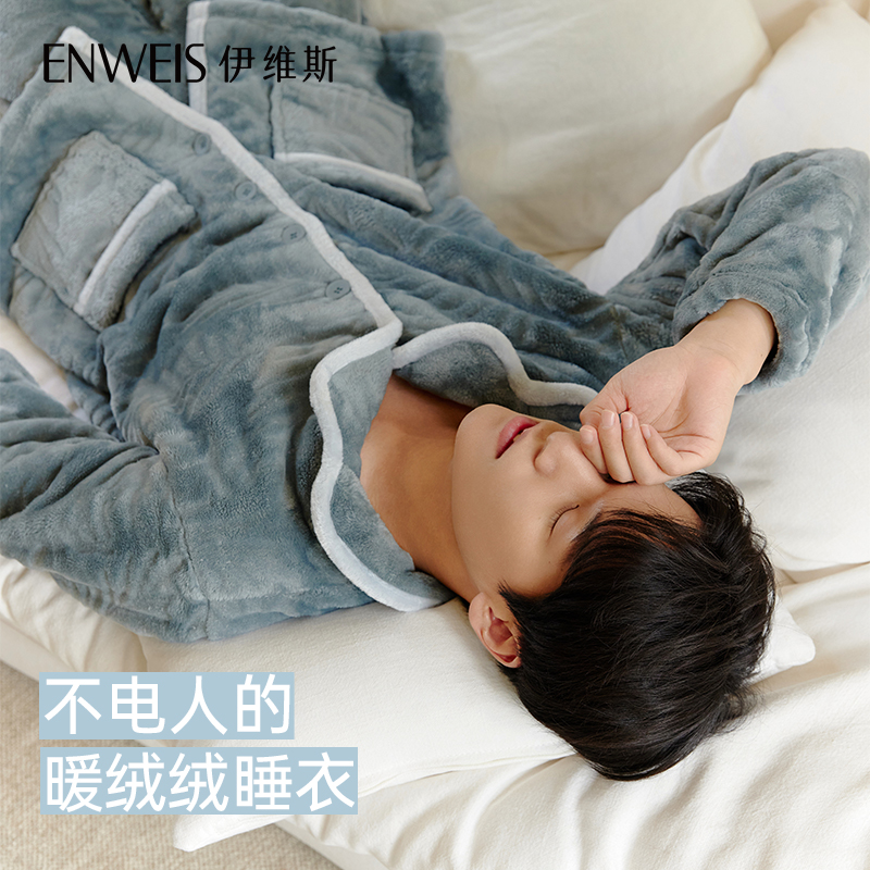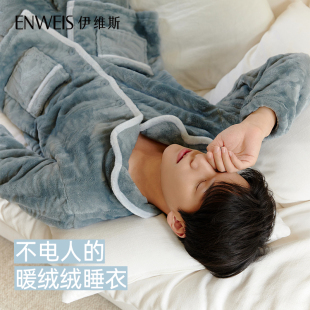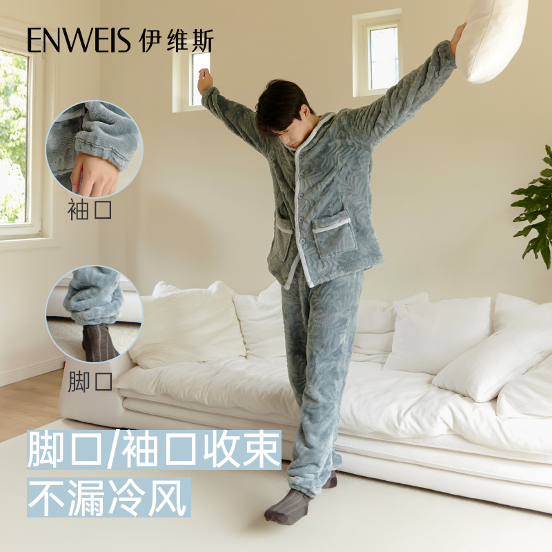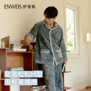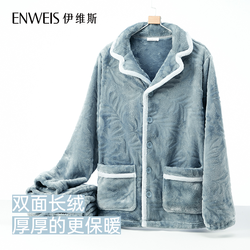 女款 家居服套装 加厚大码 秋冬款 法兰绒男士 芬腾珊瑚绒情侣睡衣冬季