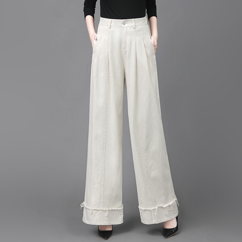 松紧高腰舒适透气纯棉休闲裤 女2024新款 潮酷毛边拼接阔腿裤 时尚