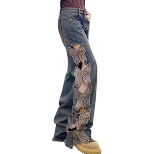 高腰宽松显瘦拖地直筒裤 复古垂感阔腿牛仔裤 美式 新款 子 女2025秋季