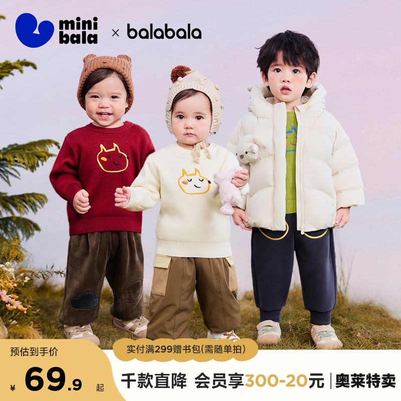 迷你巴拉巴拉男童女童宝宝冬毛衣打底红色保暖针织衫 软糯毛衣