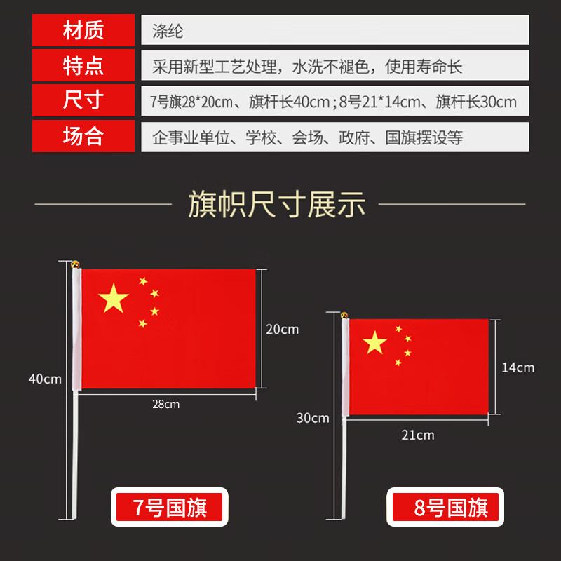 小国旗手摇旗国旗手持手挥小号7号8号中国国旗五星红旗国庆节户外装 饰品儿童迷你手拿小红旗队旗带杆旗子赠送