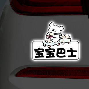卡通线条小狗宝宝巴士磁吸汽车车身贴电动摩托车反光个性 饰贴纸 装