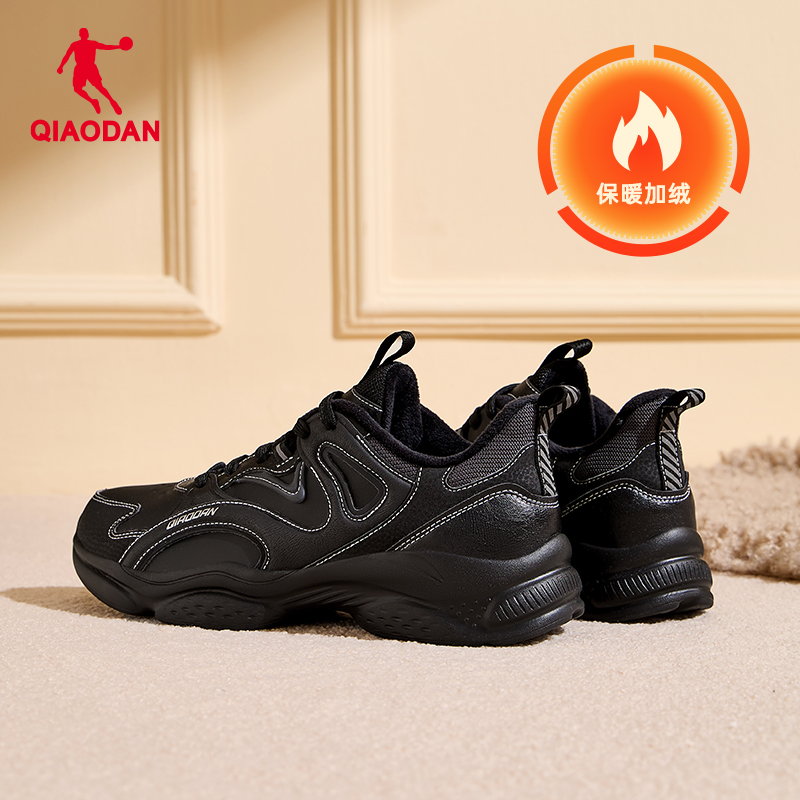 子皮面防水白色休闲鞋 加绒保暖运动鞋 男2025秋冬新款 乔丹低帮棉鞋
