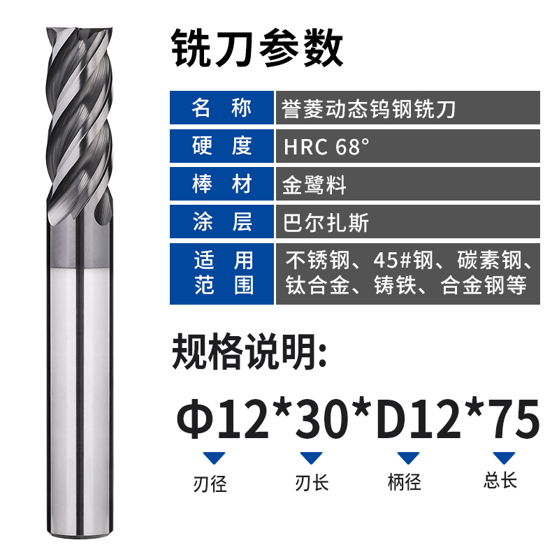 60度动态钨钢铣刀4刃硬质合金不锈钢专用开粗精铣平底CNC数控刀具