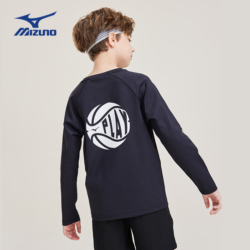 新款 春秋季 圆领套头百搭男童女童 T恤薄款 Mizuno美津浓儿童卫长袖