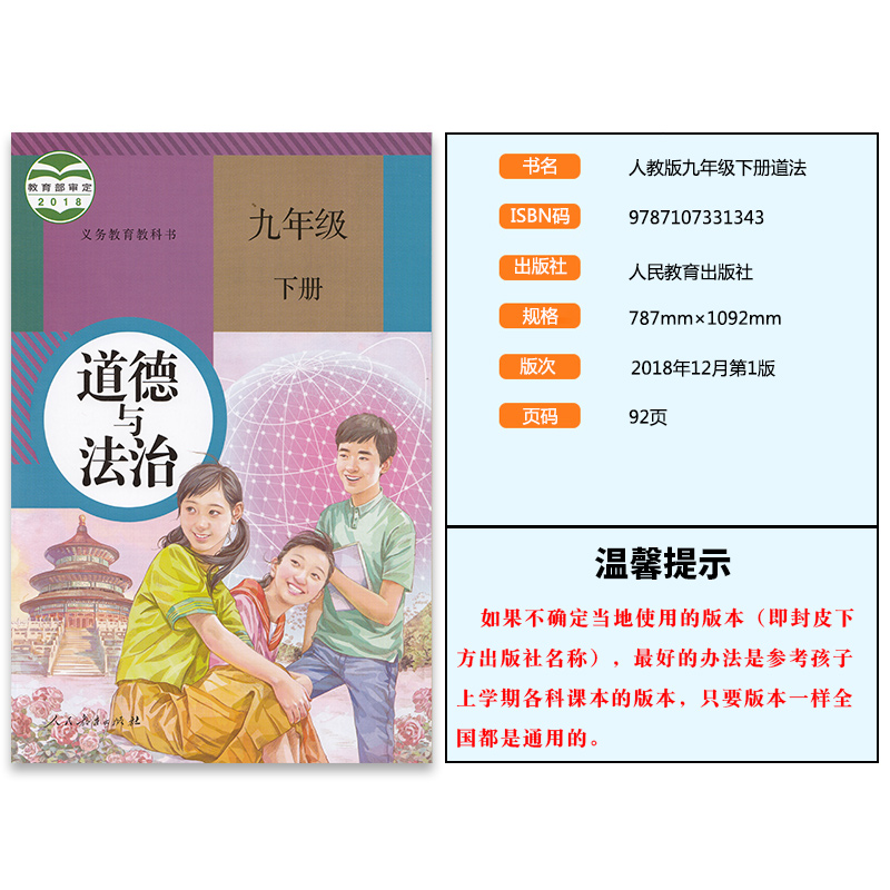 初3初三下学期9九年级下册道德与法治 九年级道德与法治下册课本人教版 社 人民教育出版 政治书 初中道德与法治9九年级下册课本教材