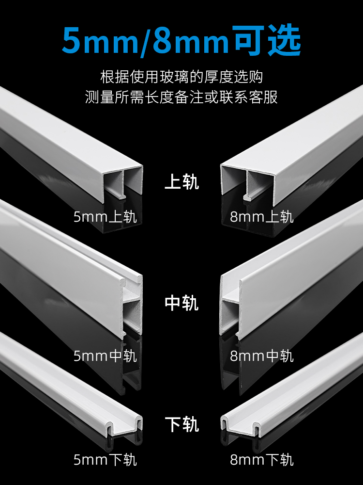 8mm玻璃移门三件套轨道书柜橱柜展柜导轨滑道推拉趟门滑轨配件