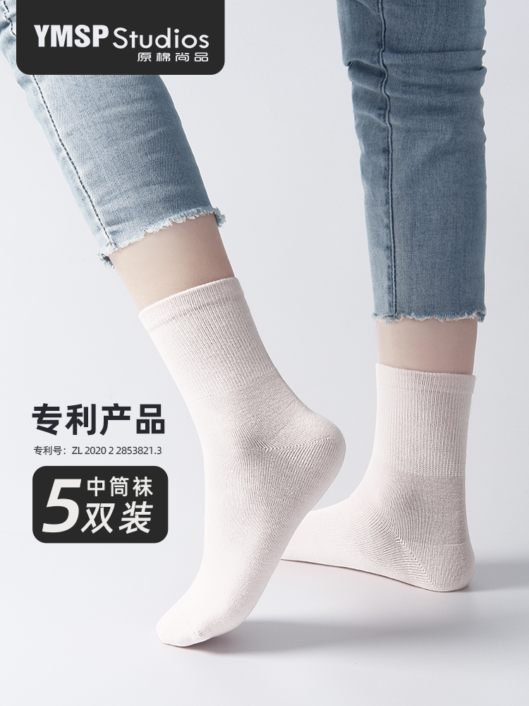袜子女秋冬季 女士堆堆袜 中长筒纯棉防臭透气吸汗纯色全棉袜中长款
