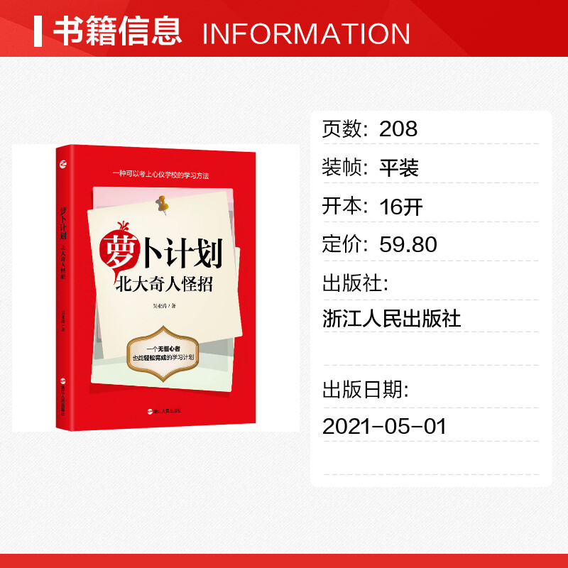 萝卜计划北大奇人怪招 浙江人民 吴业涛王月梅沈敏一 成人教育其它用书 图书籍 成人教育 新华正版