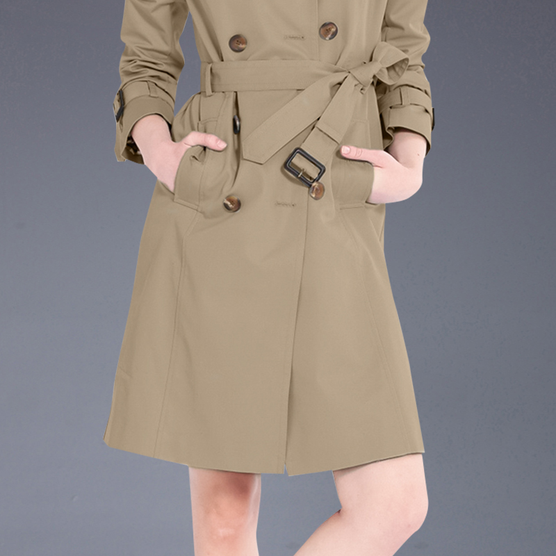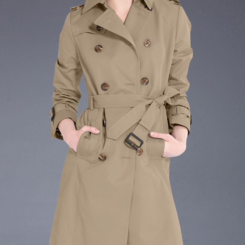 修身 欧美流行时尚 女装 风衣2025春秋新款 收腰显瘦双排扣外套 中长款
