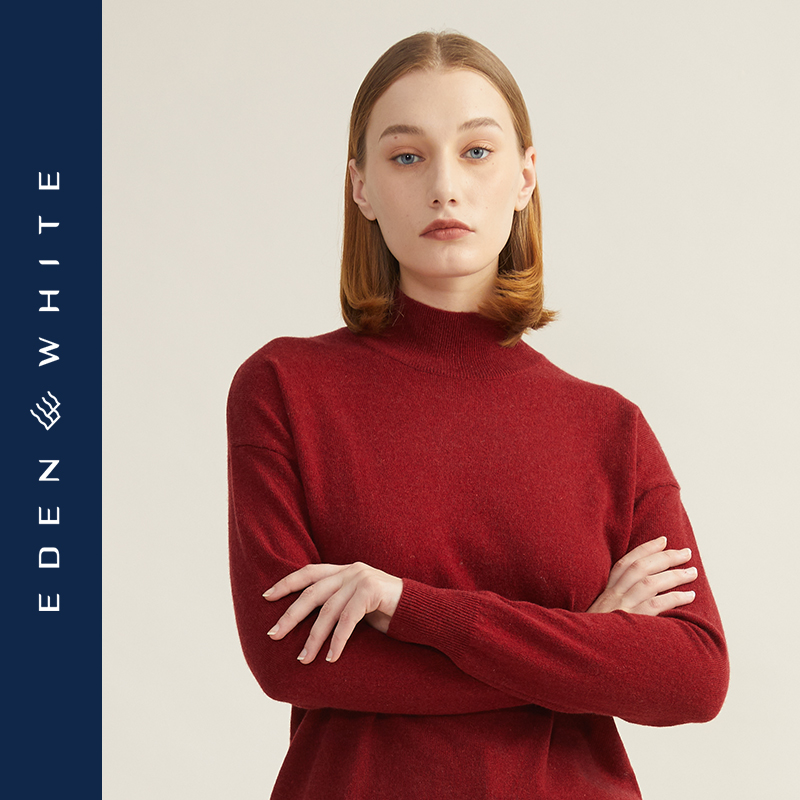 简约宽松垂坠感针织衫 圣雪绒2021秋冬新款 女半高领落肩纯色羊绒衫