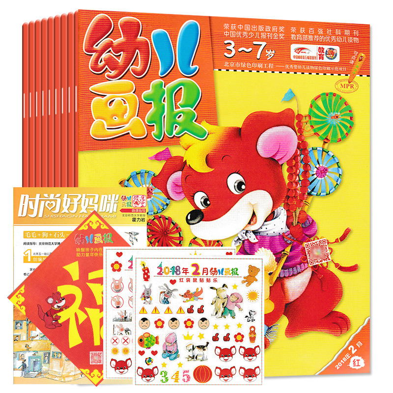 2017年1 2月 幼儿画报杂志2018年1 2月合订本打包光盘贴纸图画故事绘本游戏亲子阅读启蒙认知书籍期刊非2022年2021年全年 共9本