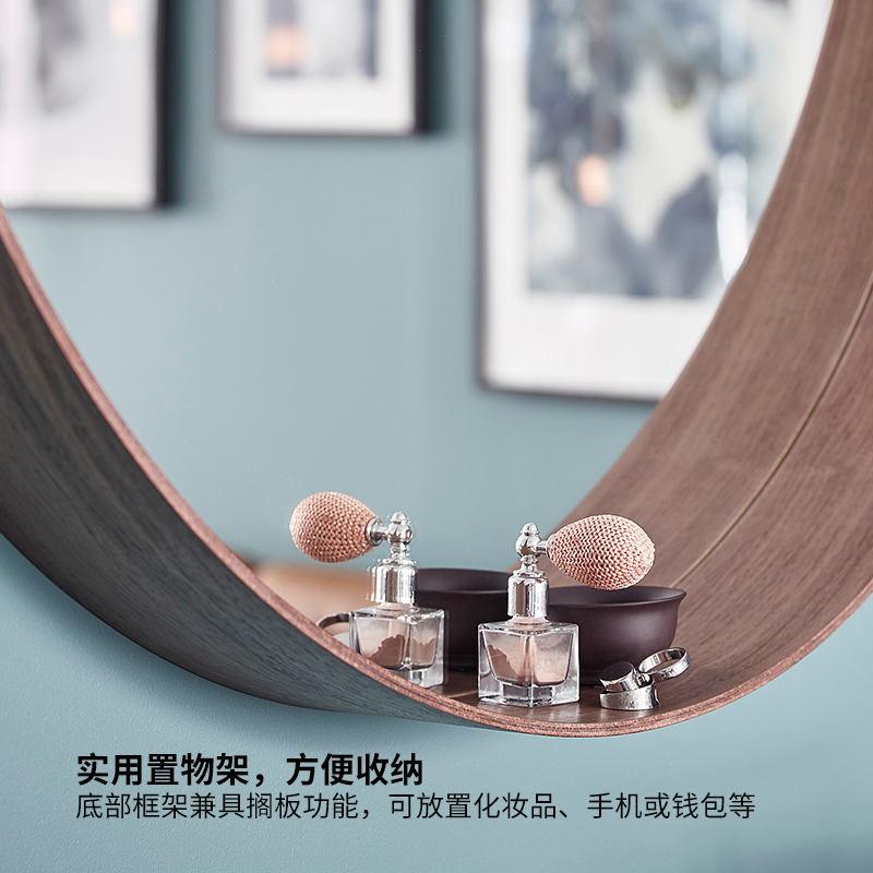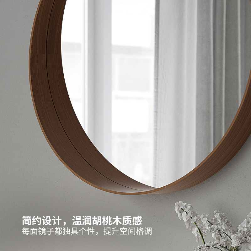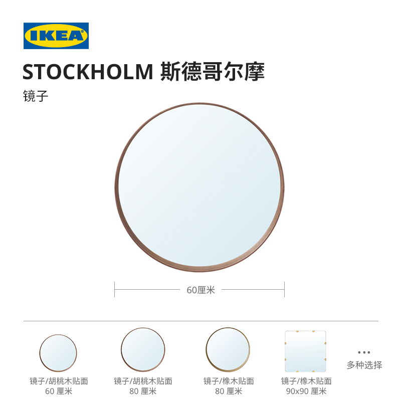 IKEA宜家STOCKHOLM斯德哥尔摩玻璃圆镜多尺寸胡桃木贴面