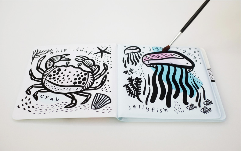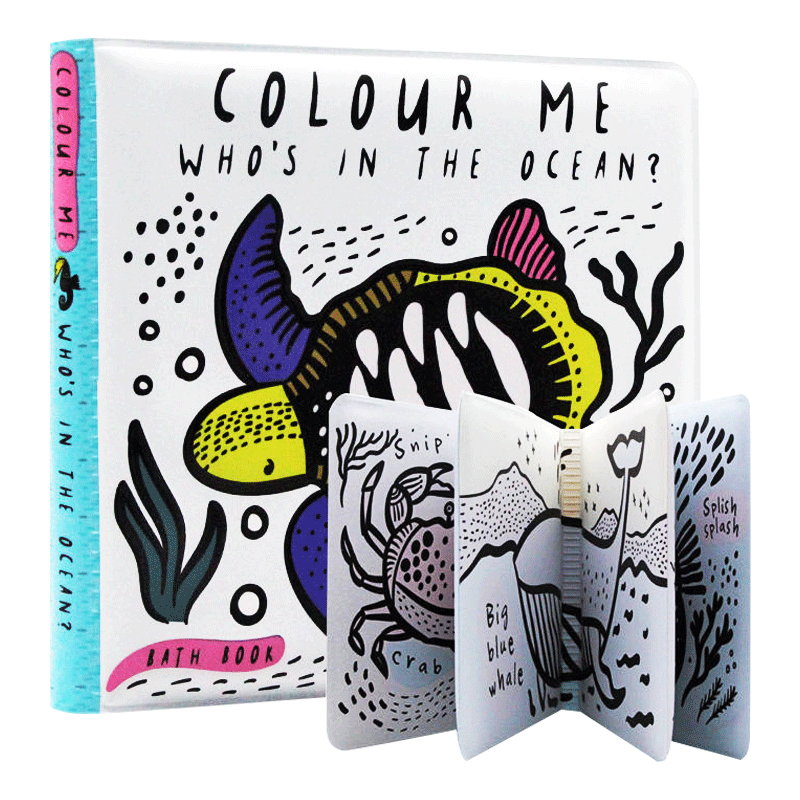 Who 沾水即显颜色 谁在大海里 绘本 书页柔软 防水浴室书 英文版 Ocean Colour 遇水变色洗澡书 英文原版 给我着色 the