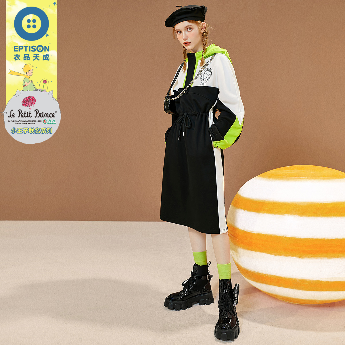 显瘦通勤 套头高腰休闲腰带简约大码 帝柔橘红色连衣裙2025秋季 新品