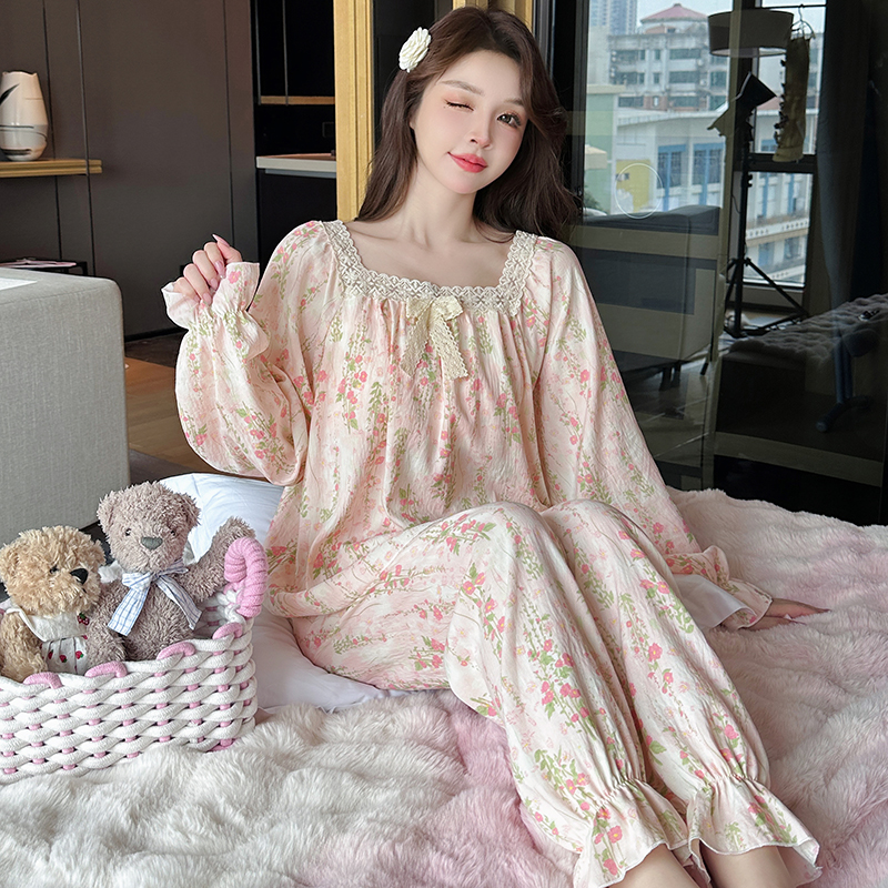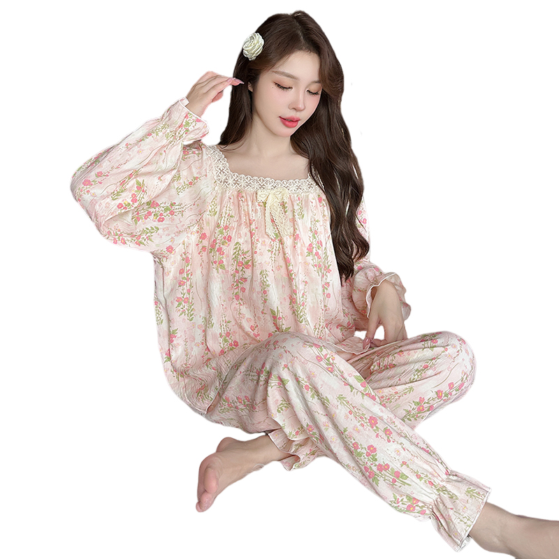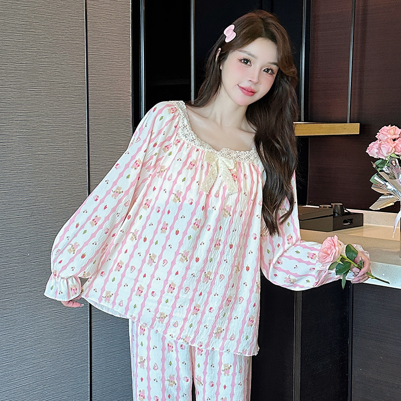 家居服可外穿睡觉趣味 带胸垫公主风学生长袖 2024新款 睡衣女套装