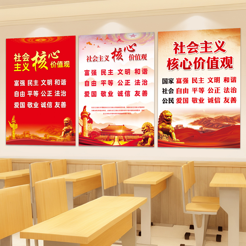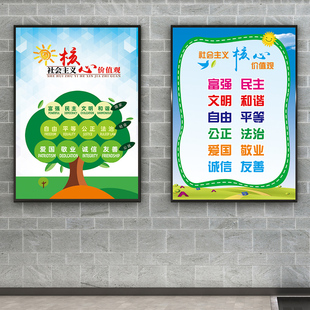 社会主义核心价值观学校培训班教室24字装 饰文化墙贴纸海报挂画
