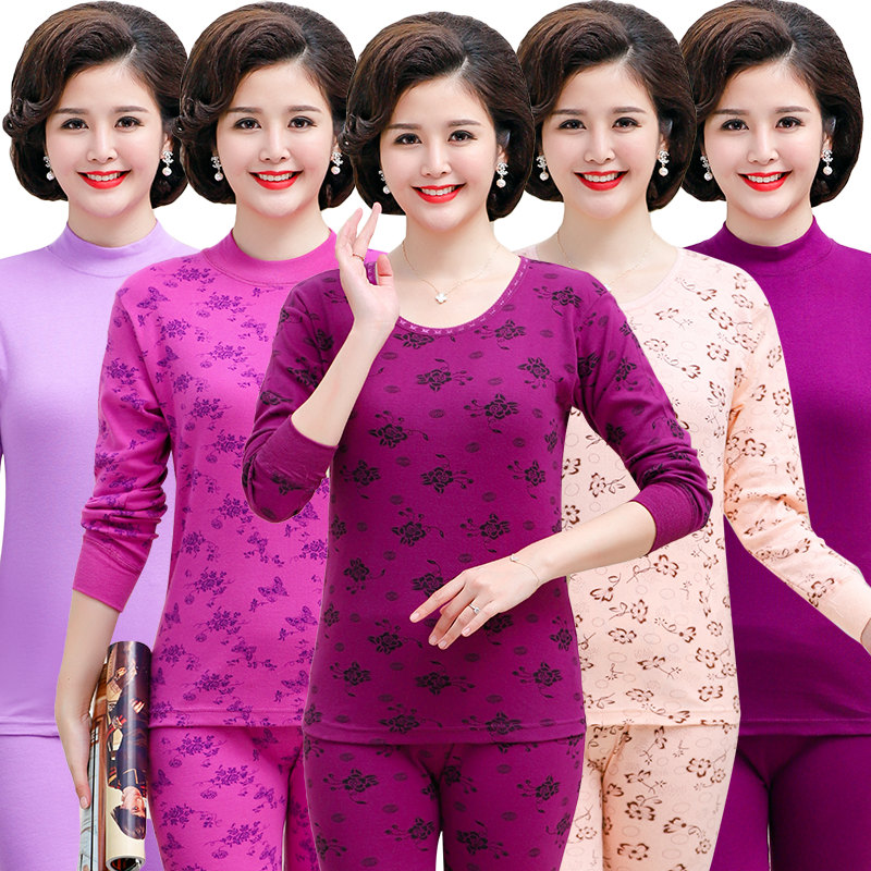 线衣线裤 秋衣秋裤 套装 老人棉毛衫 中老年女士纯棉妈妈保暖内衣薄款