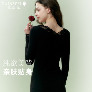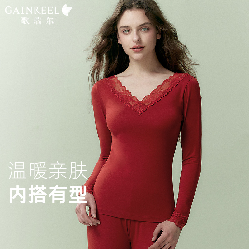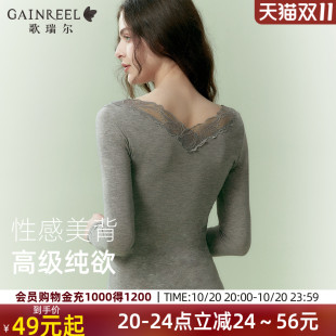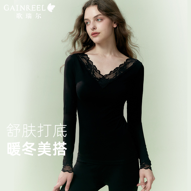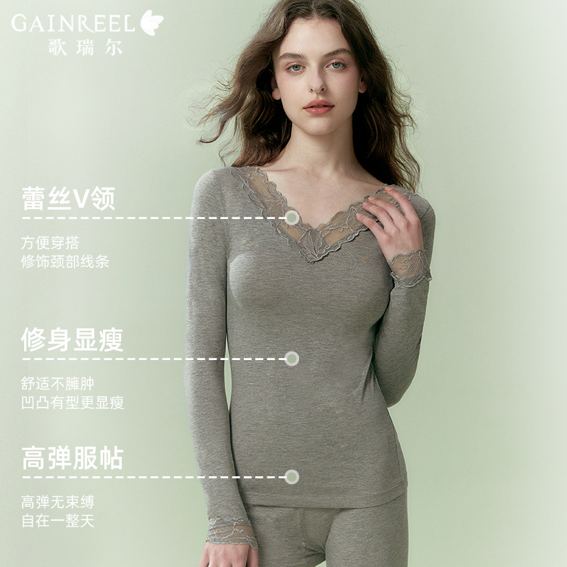 女柔软修身 歌瑞尔秋衣秋裤 打底衫 V领蕾丝性感薄款 保暖内衣 套装