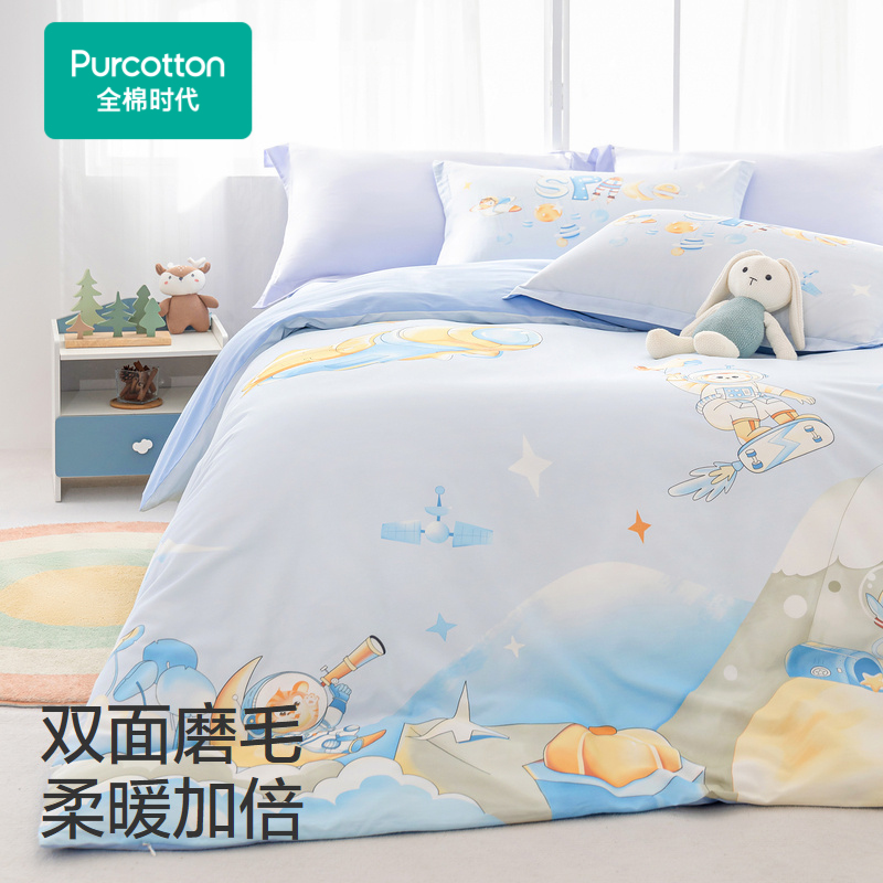 全棉时代儿童床上用品四件套2025新款 贡缎磨毛床单被套枕套四件套