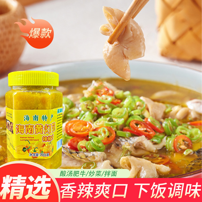 海南黄灯笼辣椒酱700g蒜蓉辣椒酱金汤酸辣酸汤肥牛下饭酱拌面