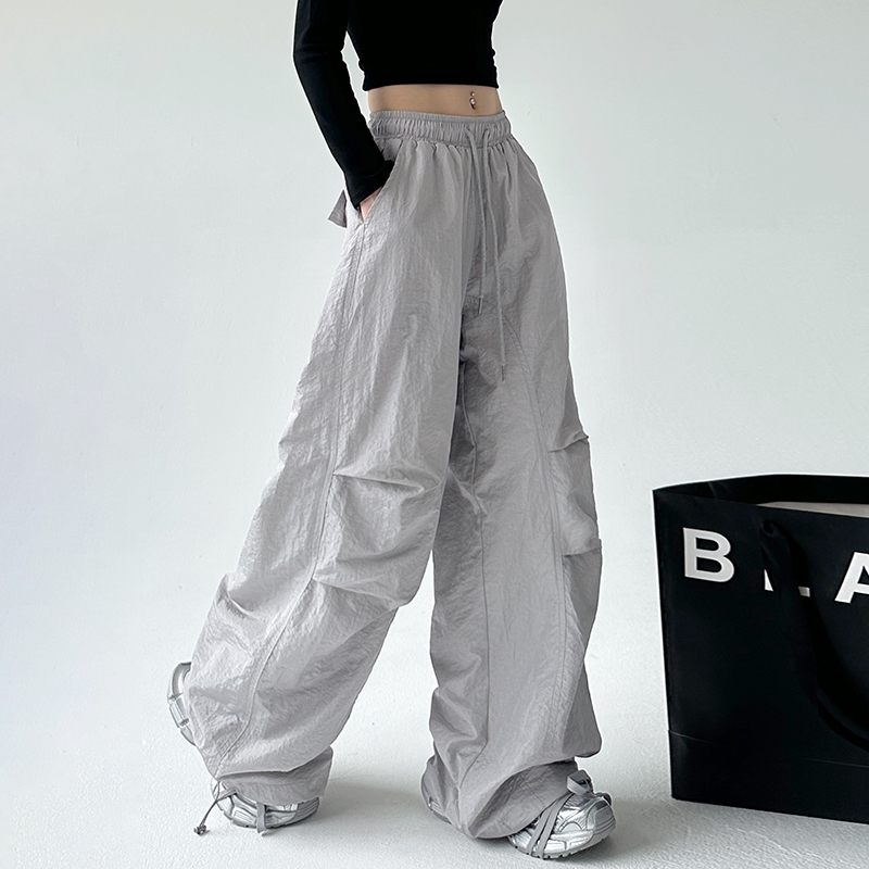 复古机能伞兵裤 裤 女秋季 束脚工装 子 松紧腰宽松直筒阔腿裤 美式