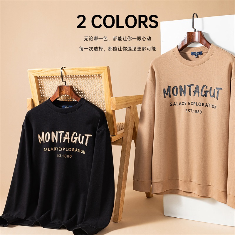 Hazzys哈吉斯男士 甄选 圆领卫衣纯色简约刺绣套头休闲上衣 秋季