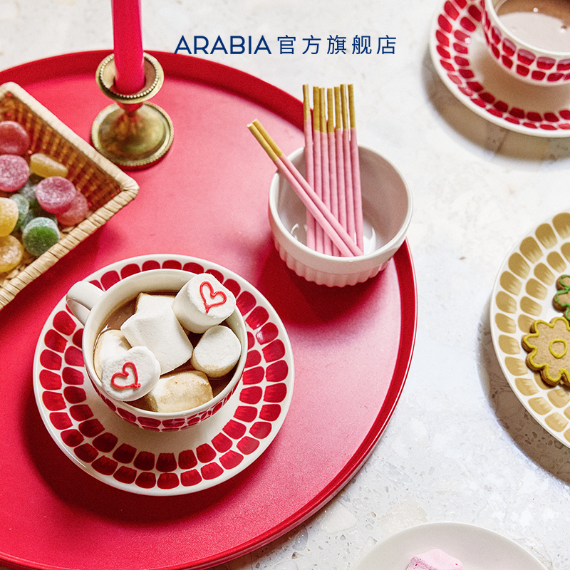 陶瓷餐具 芬兰arabia24小时复古红碗盘子咖啡杯碟套装 结婚礼物